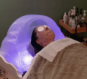 Rituel détente + la pose d’un masque alginate 100 % naturel (comme une seconde peau) durant la pose du masque pour cheveux sous fumigation (vapeur).